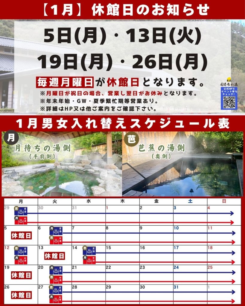 また、陰暦正月と7月の二十六日の夜半に、月の出るのを待って拝むことを二十六夜待といい、その月待ち信仰のある二十六夜山の麓に設置する温泉施設であることからこの名前が選ばれました。